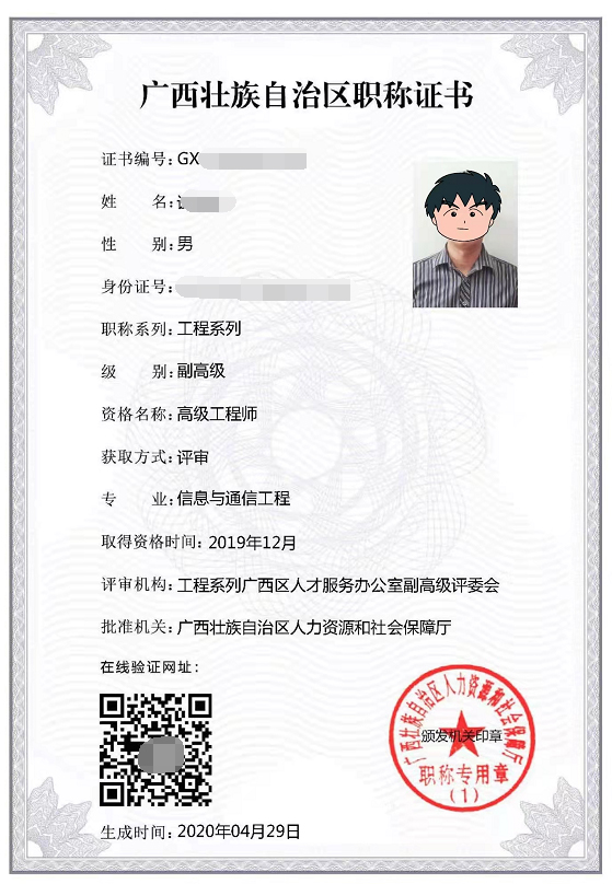 廣西職稱(chēng)評(píng)審證書(shū)樣本-全國(guó)通用